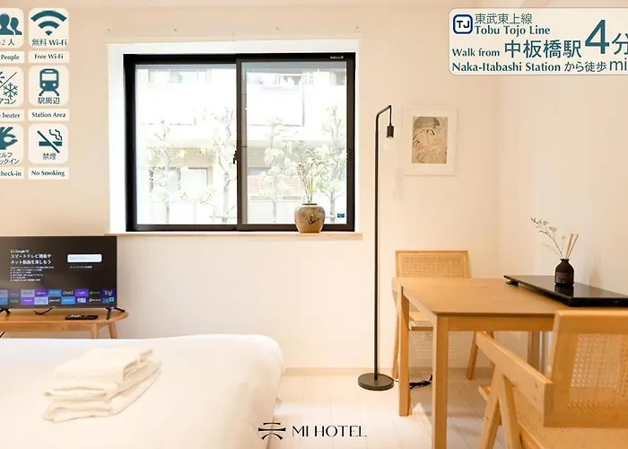 Mi-Hotel Calm Riverside includes self-catering facilities, such as an equipped kitchenette with an electric kettle, a fridge, and kitchenware. Itabashihoncho tube station is in the vicinity of the accommodation.